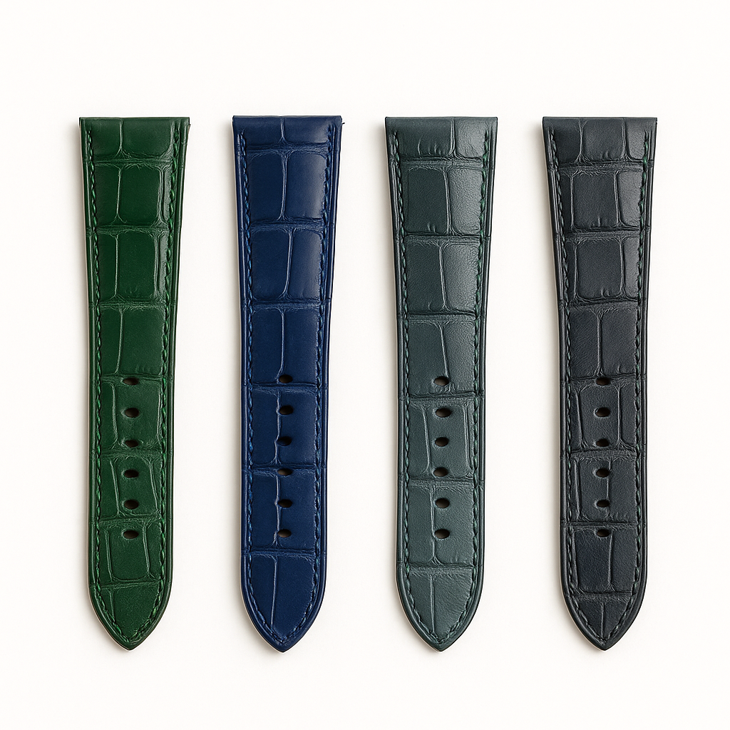 Premium alligator leather, hand-cut and finely stitched.A refined strap designed for collectors who appreciate true craftsmanship.